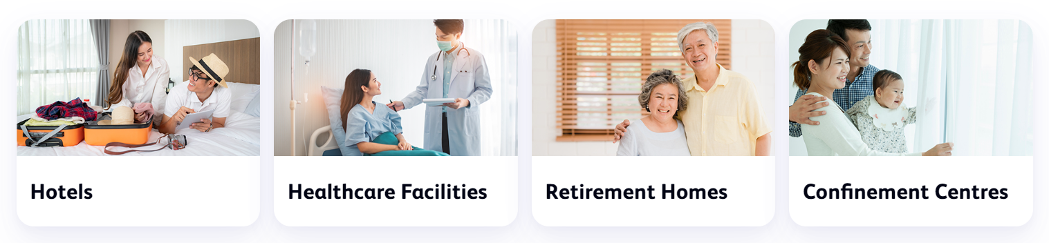 Specially crafted for accommodation-based establishments such as hotels, confinement centres, and healthcare facilities