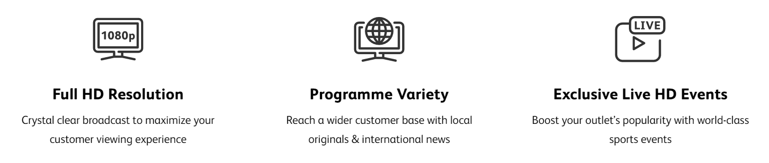 AstroBIZ caters to a variety of businesses offering you to customise your subscription from a wide range of international & local original content to exclusive LIVE sporting events, all in FULL HD.